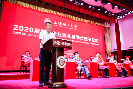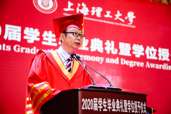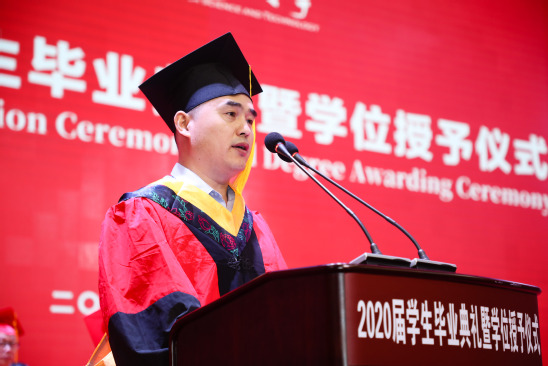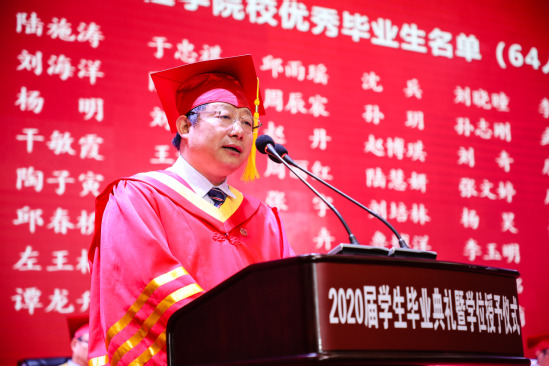 校长丁晓东做了题为《千磨万击还坚劲,任尔东西南北风,在后疫情时代逐浪前行》的致辞。在毕业生们背起行囊、扬帆起航的这一刻,丁校长送给了他们足以受用一生的三句话:一是“倒悬之危,尤须坚韧”,在抗击疫情的艰难时刻,国家和人民用“坚韧”的民族精神在短短几个月内便取得了胜利;面对未来的困难和阻挠,毕业生们请坚持“我命由我不由天”的倔强,逆风飞扬,为自己加油,为梦想奋斗!二是“摩厉以须,危中寻机”,机会总是留给有准备的人,只有为抢抓机遇而时刻准备的奋斗者,才能在变革中实现突破;三是“未来已来,日生不殆”,数字化、智能化浪潮伴随着新技术革命奔涌而来,丁校长希望毕业生们积极寻求数字化浪潮下的新职业和新需求,向书本学习、向实践学习,树立新思维,练就硬本领,争当后疫情时代乘势造势的有用之才。