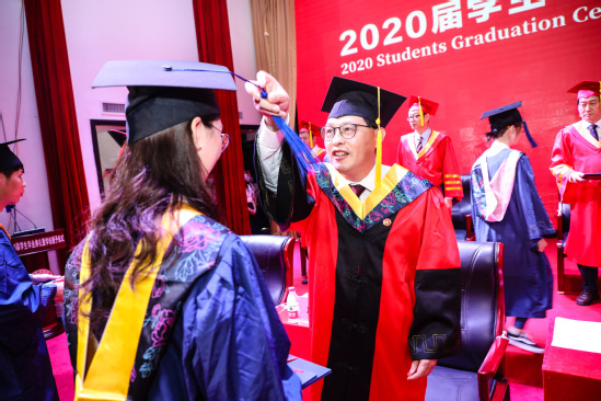 意气风发的2020届毕业生们依次走上主席台,从主席台上的领导、院士手中庄严地接过学历学位证书、接受拨穗。流苏缓缓地拂过脸颊,伴随着领导、院士们的殷殷祝福,毕业的画面在这一刻定格成了永恒。这是他们难忘的大学生涯中的终点,也是新生活的起点,这是值得永久铭记的时刻。