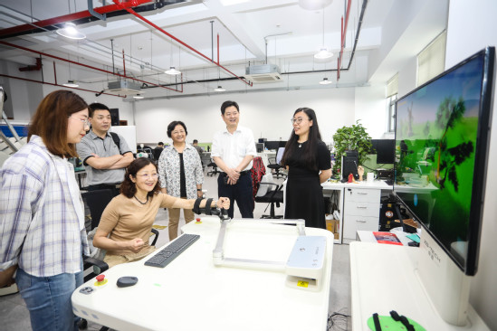 座谈会前,张辰一行参观了学校光电信息与计算机工程学院、机器智能研究院、康复器械工程技术研究中心、沪江国际文化园。