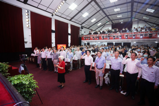 最后,荣获“中华人民共和国成立70周年纪念勋章”、有着71年党龄的老党员倪志珍同志带领全场师生党员重温入党誓词,号召全校师生党员坚定理想信念,不忘初心、牢记使命、接续奋斗。