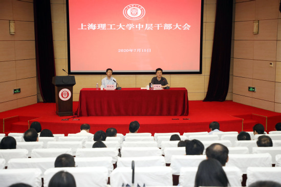 7月15日,学校在综合楼报告厅召开中层干部大会,全体校领导、中层干部参加会议。会议由党委副书记、校长丁晓东主持。