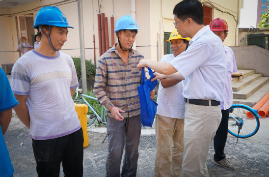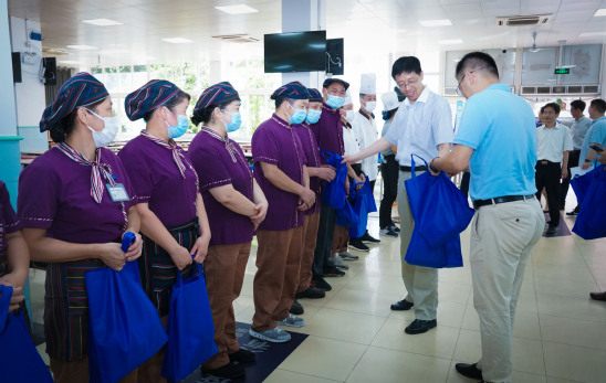 校领导每到一处,与大家亲切交谈并送上消暑慰问物品,对大家的敬业精神和辛勤付出表示衷心的感谢。校领导希望各岗位教职员工将工作落实落细落到位,将疫情防控和校园安全摆在首位,确保暑期校园安全稳定,圆满完成各项工作。