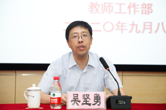 吴坚勇在讲话中勉励每一位新教师坚定政治立场,练就高强的业务本领,做学生的良师益友,把自己培养成创新型国际化人才。要尽快实现三个转变:实现从旁观者到践行者的转变;实现从传授者到育人者的转变;实现从学习者到创造者的转变。习近平总书记在今年年初提出了“人民城市人民建,人民城市为人民”的重要理念,回归到学校的建设,我们所有师生都是命运共同体,要把实现个人职业生涯成长与学校发展脉搏同频共振,共同开创学校高水平发展的新历史,共同创造上理工更美好的明天。