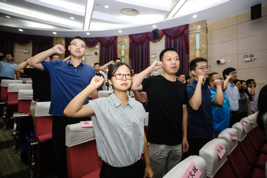 8日下午,2020年永利集团304am官方入口新教师岗前培训开班暨“思学”“志远”学者颁证仪式在综合楼报告厅举行,校党委书记吴坚勇、副书记孙跃东出席仪式。学校自2016年起实施青年教师“思学学者”、“志远学者”计划,为青年教师的可持续发展提供支持和保障。2020年学校共资助18位“思学学者”和11位“志远学者”。吴坚勇、孙跃东为入选计划的教师代表颁发了证书。“思学学者”代表、光电学院马佩老师和“志远学者”代表、能动学院应芝老师分别做交流发言。随后,培训班全体学员在人事处副处长樊小军的带领下,面对党旗进行了入职宣誓,以此引领新教师树牢立德树人、依法执教的理念,坚定职业信仰和职业操守,深刻理解教师的责任和义务,增强职业责任感和荣誉感。