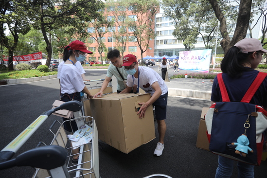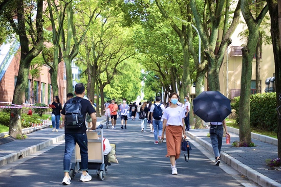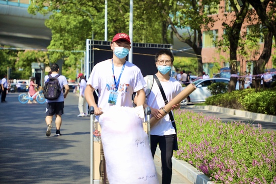 从早上7时一直到新生报到完毕,所有志愿者坚守在各自的岗位,无论是疫情防控,还是路线引导,他们丝毫不敢松懈;各职能部处的老师们也一直守候在咨询台与绿色通道,为新生们提供咨询和指导。报到点外,一辆辆短驳车在校内外三条爱心线路上不停地穿梭,志愿者们从新生及家长的手中接下他们的一件件行李,贴心地帮他们搬到寝室;100辆来自浦东机场的手推车也是今年的一大亮点,方便志愿者及新生搬运行李,学校的“暖心服务”给研究生新生及家长吃下一颗定心丸。按照防疫要求,陪同人员和车辆不进校,学校制定了周密的安全保障方案,往返于地铁站和学校南北校区的大巴、穿梭在校园各个站点的接驳车均严格做好消毒措施,确保安全舒适。所有新生进入校园需接受体温检测、刷验身份证、主动出示随申码,合格后方可入校。工作人员和志愿者也不时提醒所有同学佩戴好口罩,切实承担起维护校园安全的责任。