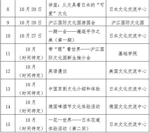 在学期伊始的金秋时节,为了更好地丰富师生们的校园文化生活,沪江国际文化园精心策划准备了多姿多彩的中外文化学习和体验活动,希望在美丽的沪江园和你相聚,共同感知中外文化的魅力!