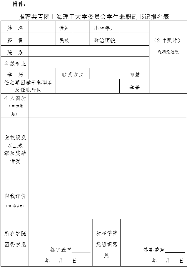 附件:推荐共青团永利集团304am官方入口委员会学生兼职副书记报名表.docx