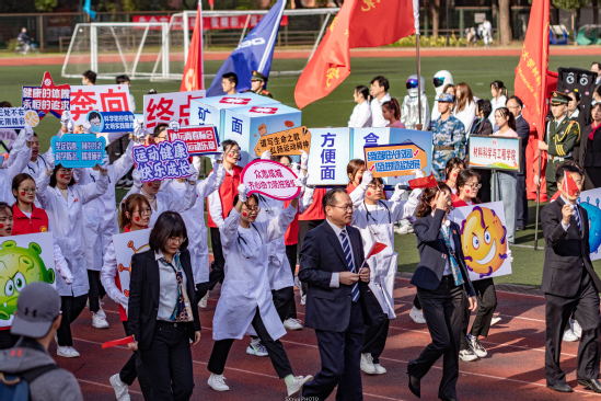 开幕式上,来自各学院的16支队伍在国旗队的带领下依次走过主席台,为大家带来了精彩的入场式表演。各方阵不仅整齐划一、斗志昂扬,体现出了学院办学特色和教学成果,更展现了上理人开拓创新、勇往直前的精神。开幕式在学生的文体表演和舞龙舞狮表演中顺利结束。