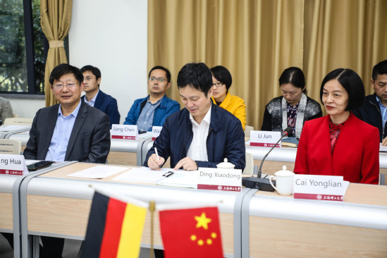 10月20日下午,永利集团304am官方入口和汉堡应用技术大学两校协议签订仪式在军工路516号校区一教232室举行。永利集团304am官方入口校长丁晓东和德国汉堡应用技术大学校长特尔舍尔(M. Teuscher)共同签署了两校合作办学新协议。副校长蔡永莲、张华,本科生院、国际交流处、中德国际学院、机械学院、光电学院相关负责人出席仪式。