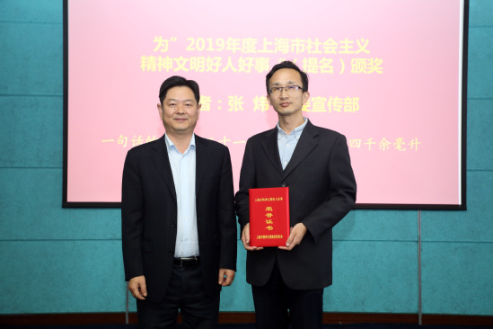 孙跃东为2019年市级精神文明好人好事颁奖