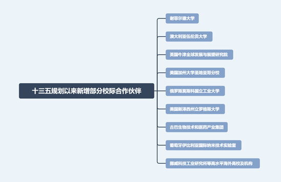 截止2019年12月,学校共与34个国家或地区的175所境外高等院校或研究机构签署了各类合作协议和备忘录。“十三五”以来,与国际一流高校和顶尖实验室达成合作,新增校际合作伙伴50个。国际化科研“朋友圈”的不断扩大,为科技创新注入了更多活力,提升了学校服务国家战略和产业社会发展能级。