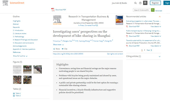 该论文主题为“基于用户视角的上海共享单车发展调研”(Investigating users’ perspectives on the development of bike-sharing in Shanghai),在研究中使用了半结构式访谈,旨在调查上海市区域范围内用户对共享单车发展的观点与看法。论文分析了共享单车商业运营模式存在问题,并从可持续共享单车计划运营管理、政策扶持、城市基础设施建设等方面提出了改善建议。