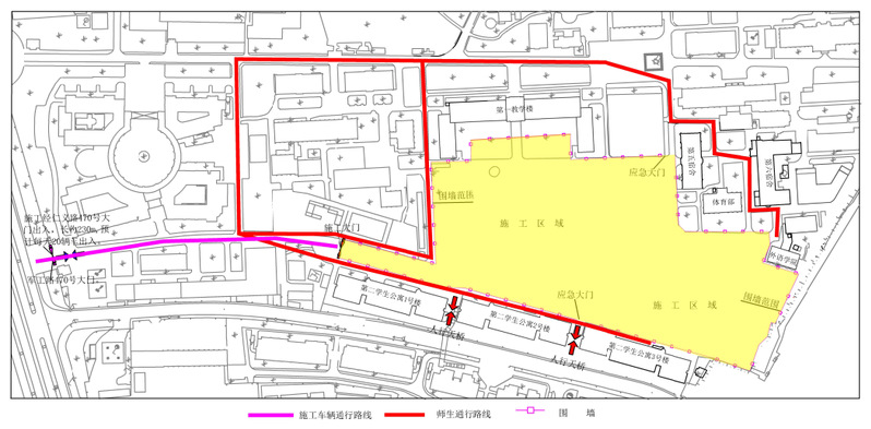3、施工期间部分施工车辆将利用学校470号出入口及校内仁义大道通行,请校内车辆及人员通行注意避让。