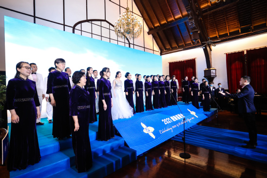 校党委书记吴坚勇与校长丁晓东早早地来到会场,欢迎师生代表,与每位师生代表亲切握手并合影留念,定格美好瞬间。由“沪江之声”教工合唱团深情演绎的《老师,我想对您说》拉开迎新答谢会的序幕,特邀著名二胡演奏家马晓晖、沪江管弦乐团等奏响《可爱的你》《万马奔腾》《四季-冬》,悠扬动人的琴声仿佛一座时光机,将人们的思绪拉回汗水与泪水交织、成长与抉择并存的2020年,令人感慨而动容。