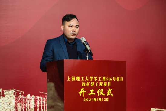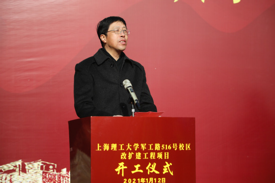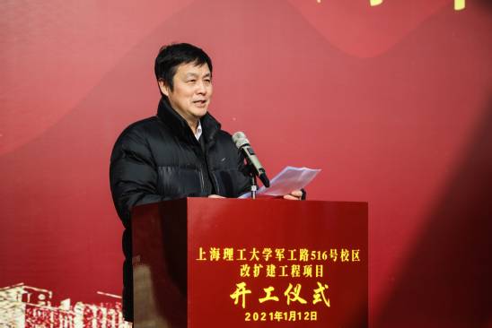 丁晓东在主持开工仪式时表示,在各级领导的持续关心和大力支持下,学校军工路516号校区改扩建工程成为2020年上海市重大建设预备项目,此工程是2021年学校全面提升校园建设的“开篇之作”,也是学校建设成为“特色显著的一流理工科大学”发展战略的关键一环。项目的正式开工吹响了踏上事业发展新征程的“集结号”,学校一定将项目建成不负时代的精品工程、不负师生的民生工程,为上海城市发展、社会进步和教育现代化做出更大的贡献。