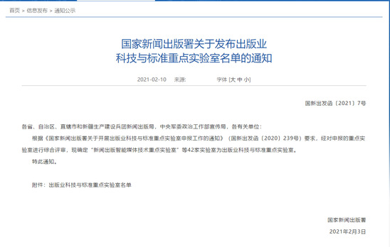 近日,国家新闻出版署发布了《关于发布出版业科技与标准重点实验室名单的通知》(国新出发函[2021]71号),以永利官网为牵头单位申报的“可信数字版权生态与标准重点实验室”成功获批。这是永利官网继新闻出版总署数字传播科学重点实验室、出版融合发展重点实验室及新闻出版总署数字印刷工程研究中心之后,再次获准立项建设国家新闻出版署科研基地。