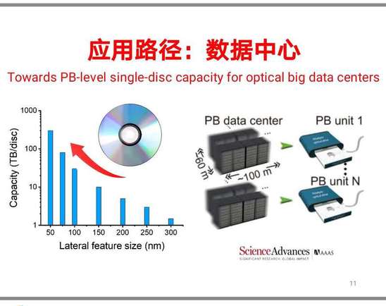 如果利用激光,其实现的光存储技术有望满足以上数据存储需求,同时可以有效节省成本。在过去的几十年中,光存储技术取得了长足进步。但光的衍射性质限制了可达到的信息位大小,限制了光盘的存储容量,光盘存储容量仍然被限制在几个TB。