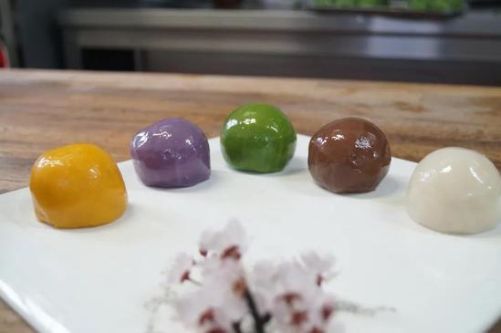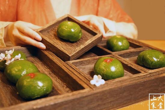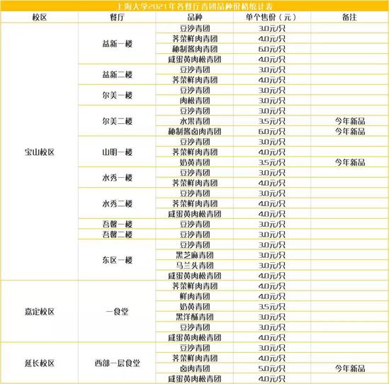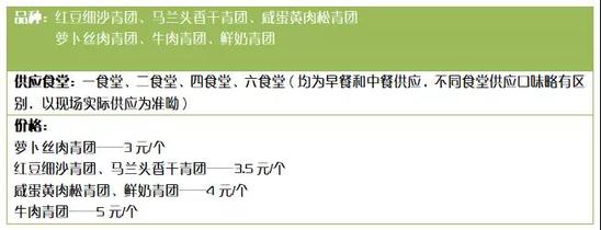 上海海事大学食堂推出青团啦,有蛋黄肉松、红豆沙、莲蓉、蜜豆、奶黄等多种口味的青团供师生挑选,价格实惠,3元、4元、5元一只不等,快去品尝吧!