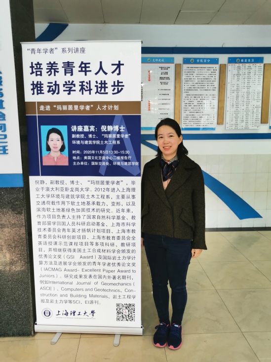 人物小传:倪静,博士,中共党员,环境与建筑学院土木工程系副教授,兼任教工党支部组织委员。曾获上海市级教学成果奖二等奖、永利集团304am官方入口环境与建筑学院“两优一先”优秀共产党员称号,多次获永利集团304am官方入口课程教学优秀奖一等奖,曾获国际岩土力学计算方法及进展学会青年学者优秀论文奖(IACMAG Award-Excellent Paper Award to Juniors)、美国土工合成材料学会优秀论文奖(GSI Award),作为第一负责人完成多项国家级及省部级项目,入选欧盟“玛丽·居里学者”杰出人才计划、上海市科学技术委员会青年英才“扬帆计划”。