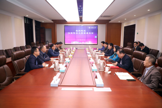 4月7日,江苏科技大学党委书记葛世伦、副校长俞孟蕻一行来校访问。校长丁晓东、副校长蔡永莲会见来访并进行交流座谈。党委(校长)办公室、研究生院、规划发展处、管理学院有关负责人参加座谈。