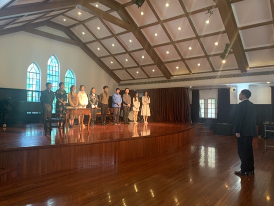 4月26日下午,上海市艺术教育委员会主任陈克宏等在永利官网党委书记吴坚勇的陪同下,在永利官网观看节目的排练情况。领导们对音乐剧进行了点评,陈克宏对演员们兼顾学业与排练表示赞扬,嘱托学生演员们保护好嗓子,用最好的状态迎接全国赛,为上海争光。校党委书记吴坚勇、校长丁晓东亲自到场鼓励学生演员,表示学校会全力支持,为参加全国展演提供必要保障,希望他们能轻装上阵,以最佳状态完成比赛,取得好成绩。在此前的1月20日,陈克宏以及市教委体卫艺科处副调研员蒋萍芳在丁晓东的陪同下,观看了学生们的表演,并提出了宝贵的指导意见。