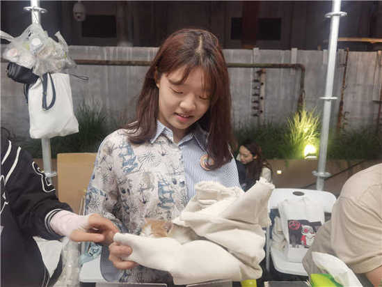 虽然是一所理工科学校的师生们摆的摊,但此次上理工的摊位也充满着浓浓的人情味。现场,一名女大学生还抱来了刚出生的小奶猫,吸引了不少年轻人驻足询问。“我们所有的文创产品的收入都用来支持流浪猫的绝育和喂养哦。”