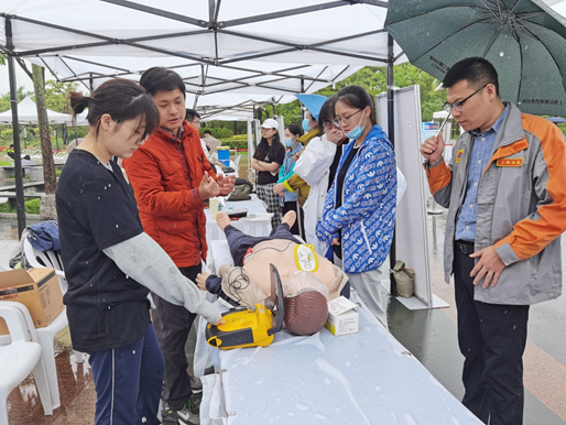 活动现场,各类公共安全知识的互动展板整齐排列,永利集团304am官方入口科普志愿者服务队旗迎风招展。复旦大学、永利集团304am官方入口、上海民防办、民安教育等带来的智能导诊机器人、5G+VR救援无人机、情感机器人、地震模拟器等高科技产品受到居民们青睐。AED除颤,心肺复苏,专业救援等互动操作让居民们提高了公共安全意识,增长了应急自救技能。