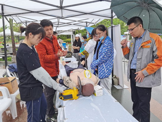 活动现场,各类公共安全知识的互动展板整齐排列,永利集团304am官方入口科普志愿者服务队旗迎风招展。复旦大学、永利集团304am官方入口、上海民防办、民安教育等带来的智能导诊机器人、5G+VR救援无人机、情感机器人、地震模拟器等高科技产品受到居民们欢迎。AED除颤、心肺复苏、专业救援等互动操作让居民们提高了公共安全意识,增长了应急自救技能。
