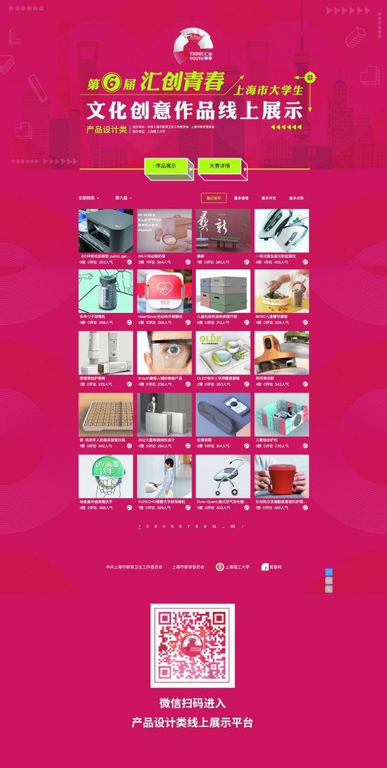 本届“汇创青春”产品设计类展的主题是“造物新生态2.0”,旨在将产品创新的上下游端口进行资源整合,将政府、高校、青年造物者、品牌方、工厂、媒体等圈层链接,综合开发创意产品,全面打通“学生作品—孵化产品—商品”的创新生态。此外,此次活动联合中国最大的工业设计网络平台打造为期一年的公共线上展览,让学生能够与数十万优质的产品设计师1对1沟通,并在国内一线短视频平台——抖音开设官方号报道,记录参赛学生创作过程与创新想法。
