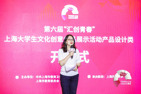 版艺学院工业设计系主任谌涛向与会人员介绍了活动的概况。赵丽霞在开幕词中谈到,“汇创青春”经过六年发展,吸引了数百万学生积极参与,已成为辐射长三角乃至全国的“大学生文化创意创新”知名文化品牌,本届活动将秉持初心,持续推动学生作品向商品转化,大力营造长三角文创产业发展的生态环境,打造上海文化品牌。