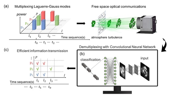 近日,团队还将人工智能技术引入高阶轨道角动量光通讯中,实验上搭建了超高容量的轨道角动量键控光学通讯系统,该工作以“基于卷积神经网络的768类拉盖尔-高斯模移键控自由空间光通信(768-ary Laguerre-Gaussian-mode shift keying free-space optical communication based on convolutional neural networks)” 为题发表于光学领域权威期刊Optics Express上。人工智能通过学习高阶轨道角动量光束的特征,能够在3ms的时间内对其模式作出判断,从而推断出高达768类复杂轨道角动量信息。在实验室里实现了10m距离的彩色图像信息传递,据了解768类的轨道角动量键控光通讯是目前的世界纪录。栾海涛研究员为该论文第一作者。