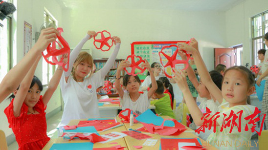爱心助学,情暖乡村。在兵书阁村,实践团在县溪镇锅冲乡小学开展了以“初心忆党史,剪绘赞中国”为主题的党史微课堂。通过听、讲、颂、答、唱等互动互学,带领小朋友以生动活泼的形式认识具有重要意义的党史转折点、时间线,通过剪纸和拼贴画的新颖形式拓宽红色教育范围,鼓励乡村儿童也能赓续红色基因,讲好党史故事。