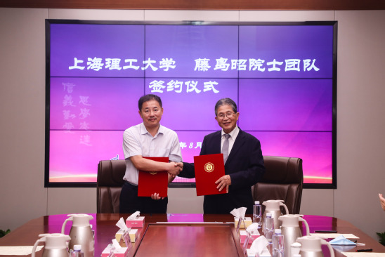 人事处处长朱坚民代表学校与藤岛昭院士及团队成员签署工作协议书。仪式结束后,藤岛昭院士及其团队与学校相关学科负责人、教师进行了学术前沿交流与探讨。