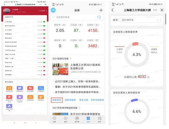 点点手机上WeLink门户的“迎新系统”,即可根据需要办理各个事项;入校前就可以与辅导员和班主任在线联系,解答心中的“十万个为什么”……今年很多上理萌新们的报到体验,“丝般顺滑”的报到体验,离不开学校的“智慧蓝”。学校耗时2个多月,联合所有学生服务相关部门共同梳理迎新服务事项,把办事说明和业务办理有机整合,系统构建迎新服务场景。新生在入校前,就能够提前办理需要办理的各事项,进校可以做到“不见面”报到。