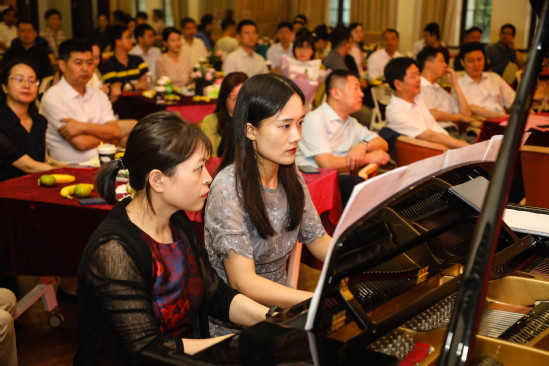 在交流发言期间, 永利官网青年教师张宇迪和嘉宾闫红叶为大家献上了欢快的钢琴四手联弹《自由探戈》,沪江之声教工合唱团代表献唱了一首女声小组唱《飞来的花瓣》,会场气氛欢乐和谐。