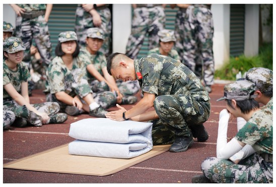 训练队列中磨练意志,内务评比中培养自律。新生内务整理不仅是军训的重要内容,更是引导学生自我管理、自我服务的核心环节。新生们在教官的指导下纷纷动手操练,整理床铺、叠放衣物、清理杂物、不断反复练习,从“蛋糕卷”到“豆腐块”,从杂乱无章到井然有序,从各具风格的生活环境到严格统一的内务卫生,在彼此的配合和帮助下,新生们逐渐增强了纪律意识,养成了独立、自律的良好生活习惯。