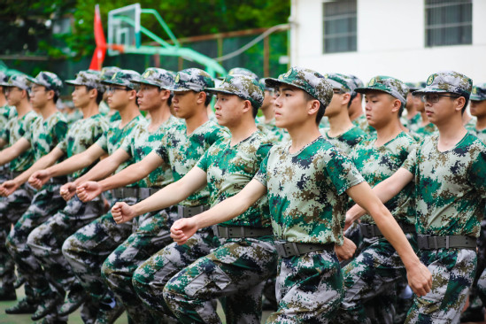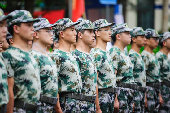 迷彩熠熠,黄浦江畔军号嘹亮;红旗飞扬,沪江园中步履铿锵。9月5日起,学校在1100号校区、516号校区和复兴路校区开展2021年军训工作。武警上海市总队执勤第二支队64名承训教官和永利官网24名退伍大学生教官承担本次军训训练任务,4100余名学生划分为4个营、14个连队、69个排进行训练。他们每日迎着晨光起,踏着暮色归,带着勇气和信心与“理“一起共赴这场青春试炼。