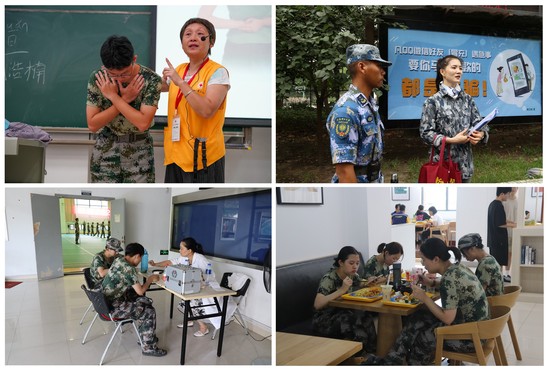 在军训的磨砺中,教官永远是特别的存在。在正步齐步的练习中,是他们教会了大家规范和坚持;在追求队列完美的过程中,是他们不厌其烦地反复指导与纠正;在难得的休息时间中,还是他们带给了大家欢声与笑语。迷彩与迷彩的磨擦间、胶鞋与草地的碰撞间,暖暖师生情在绿茵场上开始滋长。