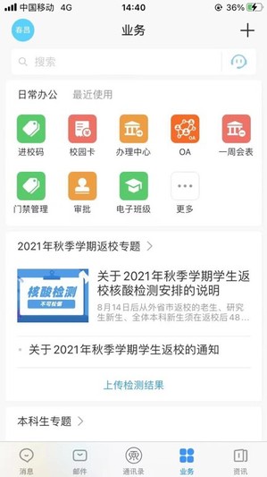 (1)打开Welink,在日常办公中找到“进校码”;