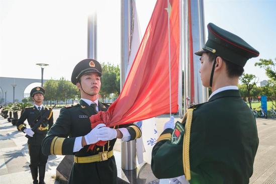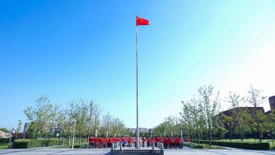 同天早上8时,上海对外经贸大学校园里响起了嘹亮的国歌声。在松江校区信息楼南广场上,在国旗护卫队的守护下,五星红旗冉冉升起。参加升旗仪式的全体师生肃立,向祖国致敬。“我爱你,中国!”