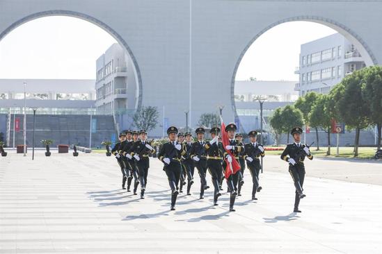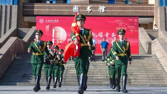 10月1日上午8时,上海电机学院400余名师生代表汇聚临港校区图书馆会林广场,升旗仪式在大学生艺术团演唱的一首《红旗飘飘》中拉开帷幕。