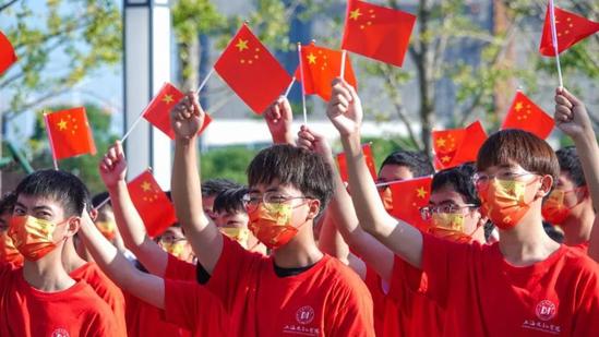 沪上高校莘莘学子用不同方式,表达对祖国母亲的深情祝福。