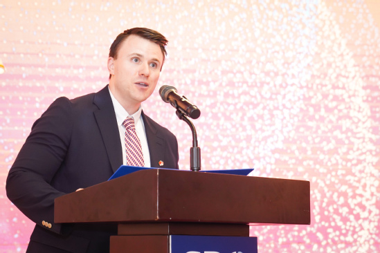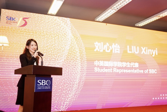 中英国际学院商科负责人李·亨德森(Lee Henderson)、学生代表刘心怡和校友会会长李博依次发言,他们结合亲身经历与感悟,以朴实无华的语言,从不同角度回望了学院的发展征程,讲述了与学院砥砺前行、共同成长的故事,展现了学院“责任领导力”、“创业与创新”和“文化同理”三大育人理念,表达了对学院的深情祝福和感激之情。