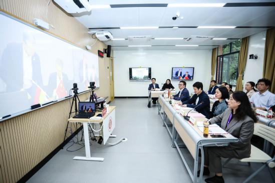 随后,丁晓东主持召开了中德国际学院2021年度联合管理委员会会议,汉堡应用技术大学德方项目负责人胡特教授(Michael Röther)、富特旺根应用技术大学德方项目负责人郝赫教授(Markus Hoch),科堡应用技术与艺术大学德方项目负责人维克教授(Michael Wick)和东巴伐利亚雷根斯堡应用科技大学德方项目负责人席莱内尔(R. Schreiner)教授在德国通过视频方式参与会议。