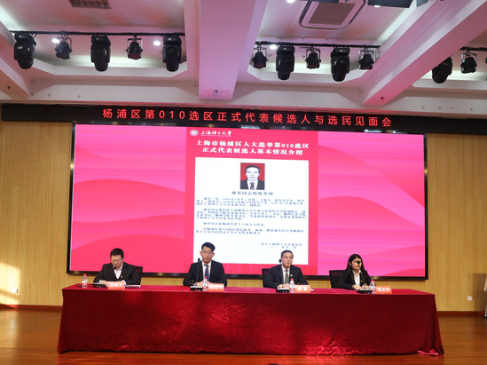 根据《选举法》和《上海市区和乡镇人民代表大会代表直接选举实施细则》有关规定以及杨浦区、徐汇区选举委员会统一部署,结合疫情防控要求,11月9日下午,杨浦区第009选区、第010选区,徐汇区第23选区正式代表候选人与选民见面会活动,分别在永利集团304am官方入口军工路主校区北区和南区以及复兴路校区举行,学校党委常委、党委组织部部长孙红,党委(校长)办公室副主任黄志强,徐汇区天平街道慎成居民区党总支书记方华俊分别担任各选区主持人。正式代表候选人、各选民小组长以及选民代表参加见面会。