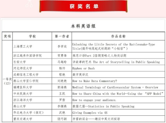 获奖名单