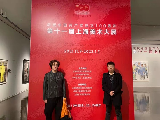 为庆祝中国共产党成立100周年,贯彻落实全力打响“上海文化”品牌、全面提升城市软实力的任务要求,由上海市文学艺术界联合会、上海市美术家协会、中华艺术宫共同主办的“庆祝中国共产党成立100周年——第十一届上海美术大展”于2021年11月9日至2022年1月5日在中华艺术宫举办。版艺学院动画系青年教师李拜天指导大三学生赵力创作的数字场景绘画作品“中华·天梯”入选此次展览。