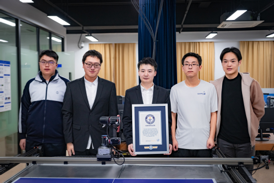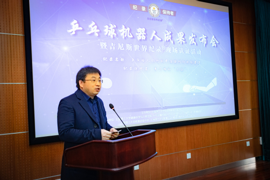 正手击球、反手挡球、快速杀球……永利集团304am官方入口机器智能研究院的实验室里正上演一场乒乓球大战,而场上“淡定”比赛的选手却是一台智能机器人“小丘”,与之对打的则是它的“生父”之一、研究院老师季云峰。11月26日,经过吉尼斯世界纪录现场认证,“小丘”凭借6241次的成绩,创造了“乒乓球人机对战中连续对打次数最多”的世界纪录。校党委副书记、副校长盛春出席并致辞。中国首位吉尼斯纪录认证官吴晓红女士为季云峰颁发认证证书。