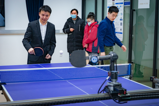 如今,小丘已经能在0.5秒内完成识别、预测、判断、控制等一系列动作,并且在与季云峰对打的将近2个小时中表现出了极强的稳定性。“‘小丘’目前比较适应我的打球习惯,可能换个陌生人会需要重新磨合一下,但是它是一个具有自主学习能力的机器人,长时间对打可以存储使用者的数据并逐步适应使用者的打球习惯,我们接下来可以给‘小丘’加入心率血氧体征采集、康复训练计划制定、个性化康复训练等功能,为亚健康人群定制‘个性化运动处方’。”季云峰谈到。谈及“小丘”的发展方向,他表示:“创造吉尼斯世界纪录是小丘成长路上的第一个里程碑,接下来我们希望让研究院自主研发的双足机器人‘小贝’与‘小丘’‘合体’,打造出既能平稳双足行走又能灵活地在乒乓球台前打球、陪练的机器人。”