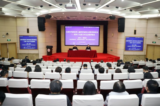 桑玉成以“在新时代新征程上赢得更加伟大的胜利和荣光——党的十九届六中全会精神解读”为题,从党的十九届六中全会通过的历史决议的背景意义、重点内容、未来影响三个方面全面深入宣讲了党的十九届六中全会精神。他在报告中指出,这次全会通过的决议是总结百年奋斗重大成就和历史经验的需要,是继往开来实现新中国百年愿景的需要,是党的自身建设和发展的需要。决议系统梳理和全面总结了百年来党的光辉历程、辉煌成就、宝贵经验和重大理论成果,有助于我们进一步加深对中国共产党为什么能、马克思主义为什么行、中国特色社会主义为什么好的认识和把握。深刻把握决议的重点内容,需要结合习近平总书记“七一”重要讲话等一系列重要文献来学习,要深刻理解“两个确立”的决定性意义,不断增强“四个意识”、坚定“四个自信”、做到“两个维护”。